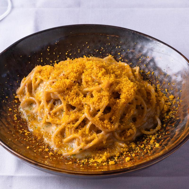 Artisanal fettucine sea urchin tomato cured tuna heart