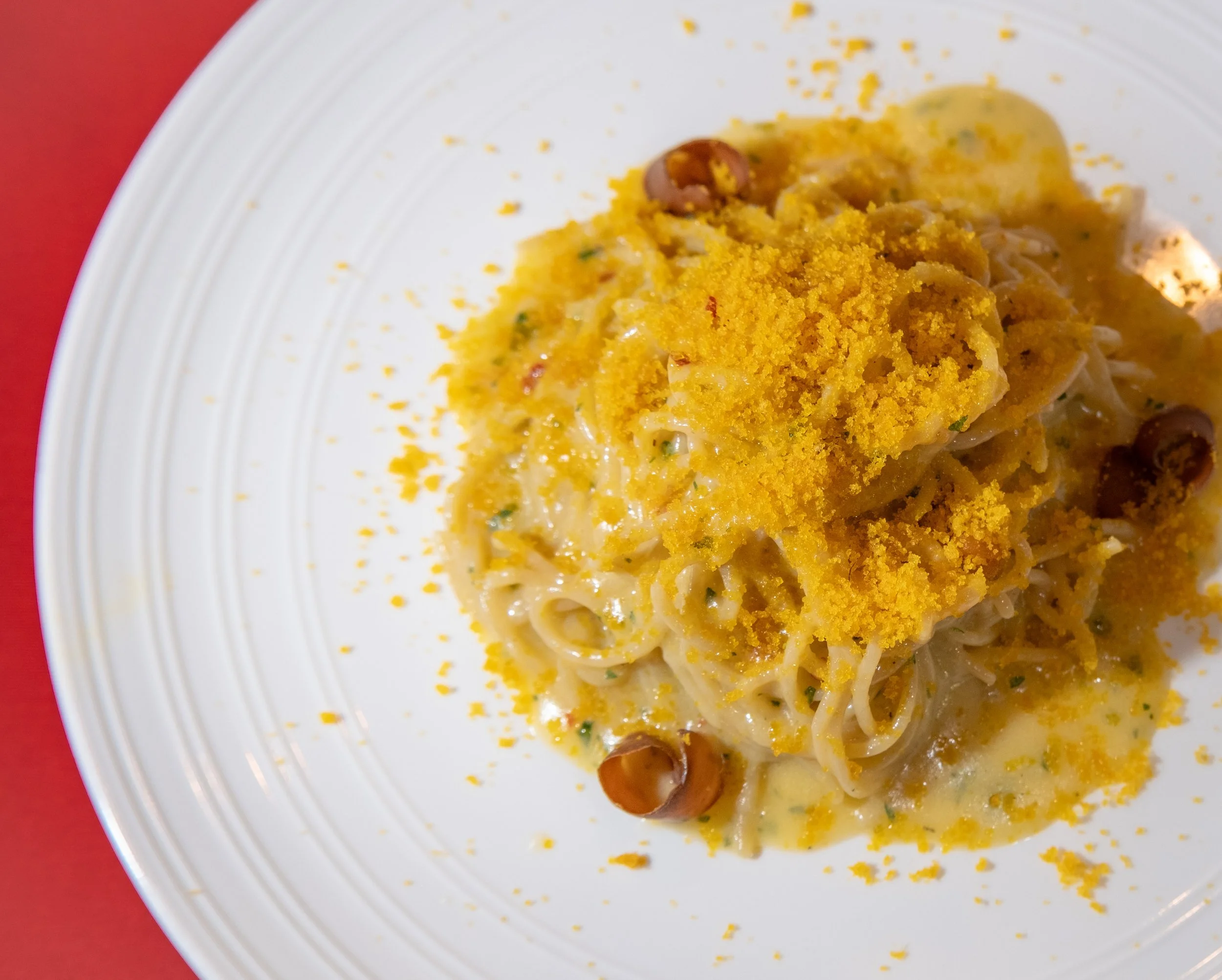 Spaghittusu cun Allu Ollu e Bottariga (Fresh Spaghetti Spicy Oil Garlic Cured Fish Roe) $32